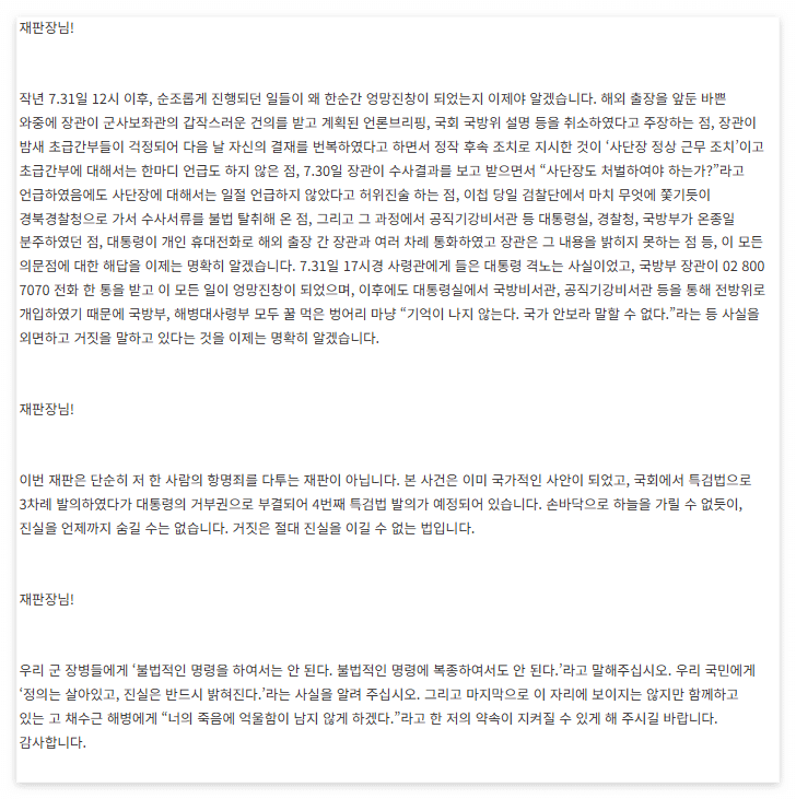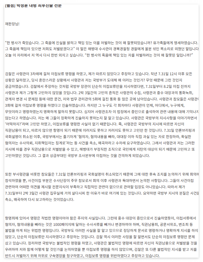 박정훈 대령의 최후 진술