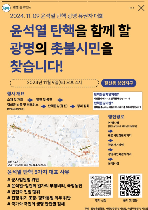또한, 지역마다 행진을 포함한 집회 프로그램이 추가될 예정이며, 시민들은 각자 지역에서 촛불을 들고 집회에 참여할 수 있습니다.