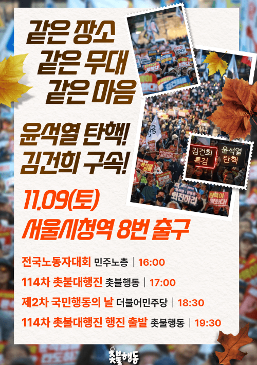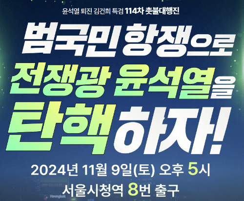 - 행사: 윤석열 퇴진 총궐기, 촛불 대행진, 국민행동의 날 행사