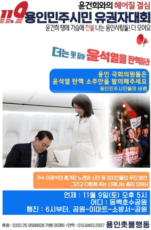 11월 9일부터 시작되는 전국적인 촛불집회는 윤석열 대통령과 정부에 대한 국민의 실망을 직접적으로 보여주는 중요한 계기가 될 것입니다. 이 촛불집회는 단순히 윤석열 정부에 대한 반발을 넘어서 민주주의 가치를 지키려는 국민적 의지를 담고 있습니다.