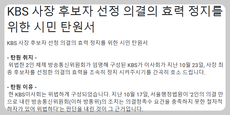 🔽KBS사장 후보자 선정 의결의 효력정지를 위한 탄원서🔽